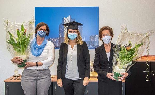 Unusual picture, but in 2020 due to the Corona times: successful doctorate of Alexandra Krüger with her "doctoral mother" Gabriele Kaiser (right) and reviewer Katrin Vorhölter (left)