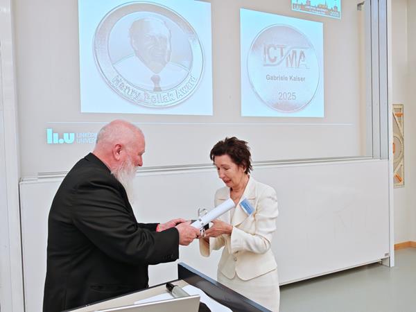 At ICTMA22 in Linköping, Sweden, Gabriele Kaiser received the Henry Pollak Award in August 2025. With this award, the ICTMA (International Community of Teachers of Mathematical Modelling and Applications, www.ICTMA.net) honours outstanding scientists for their long-standing, internationally recognised research achievements. Previous winners include Prof. Dr. Werner Blum (University of Kassel), Prof. Dr. Peter Galbraith (Australia), Prof. Dr. Mogens Niss (Denmark) and Prof. Dr. Gloria Ann Stillmann (Australia). The prize is named after Henry Pollak, an Austrian-American mathematician known for his contributions to information and graph theory. He headed the Research Centre for Mathematics and Statistics at Bell Labs and successfully applied mathematics to communication theory, discrete systems, statistics and data analysis. He later moved to Teachers College at Columbia University in New York City, USA, where he had a decisive influence on the teaching of mathematical modelling in the training of mathematics teachers. On this basis, he turned his attention increasingly to issues relating to mathematics education. At the 3rd International Congress on Mathematics Education (ICME-3) in Karlsruhe in 1976, he chaired the section on ‘The interaction between mathematics and other school subjects’. Even then, Pollak developed the frequently cited distinction between mathematics and the rest of the world, as well as the accompanying modelling cycle. He gave numerous plenary lectures at ICTMA conferences, including in Exeter in 1983, Kassel in 1987 and Blumenau in 2013, and followed the discussion on mathematical modelling with great interest.